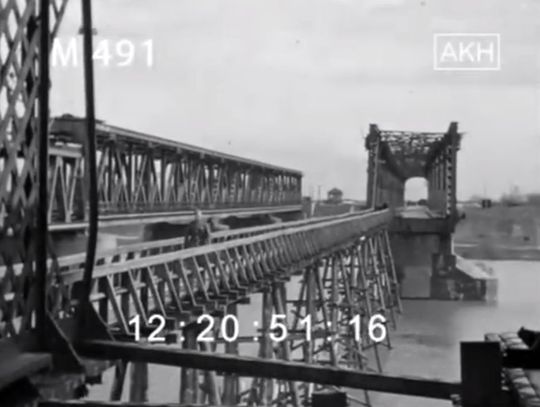 3) Trzeci to absolutnie unikalny, KOLOROWY film z przejazdu po pierwszej wersji odbudowanego przez Niemców mostu (od minuty 53:35)