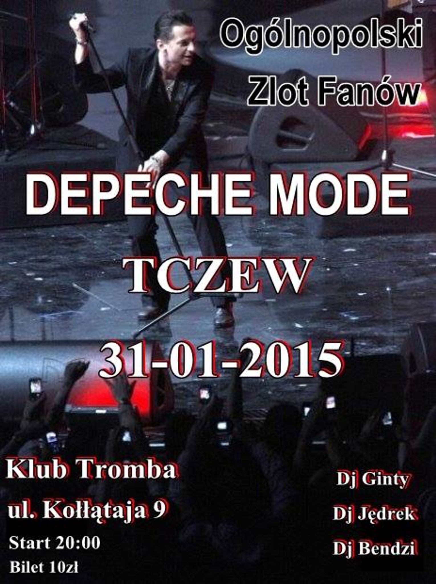 Ogólnopolski Zlot Fanów Depeche Mode w Tczewie odbędzie się 31 stycznia w Klubie Muzycznym Tromba przy ul. Kołłątaja 9. Impreza wystartuje o godz. 20 i potrwa do rana. Za warstwę muzyczną będzie odpowiadać DJ Ginty z Trójmiasta, DJ Bendzi z Bydgoszczy oraz DJ Jędrek z Trójmiasta.