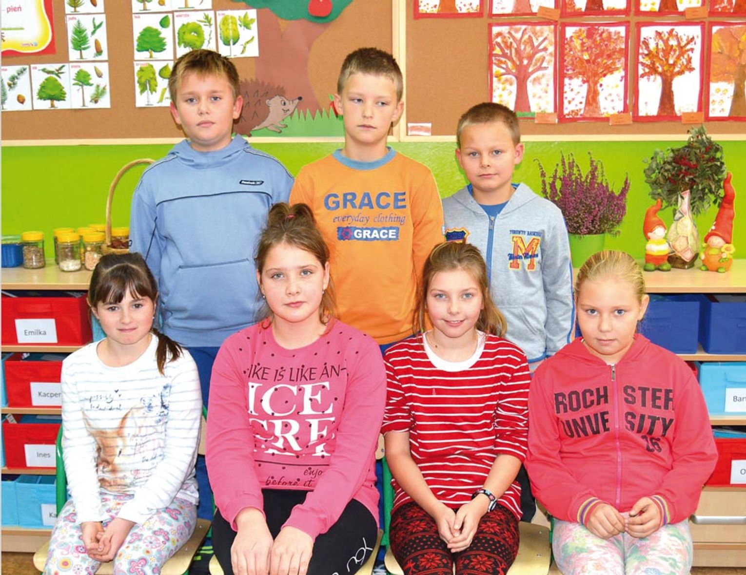 Najbardziej podobaja mi sie matematyka, WF, j. polski, j. angielski i religia. Na WF-ie sa rózne konkurencje, gramy w piłke nozna. Lubie rywalizowac z innymi. Na j. polskim chetnie poznaje i ucze sie zasad ortografii. Podobaja mi sie działania matematyczne, lubie mnozyc i dzielic. W wolnym czasie gram z kolegami w piłke, biegam, jezdze na rowerze, na rolkach, skacze na trampolinie. Robert Lewandowski to mój idol, ale piłkarzem zawodowym nie chciałbym byc. Jestem ministrantem. Chciałbym zostac farmerem. Na wsi jest spokojniej.