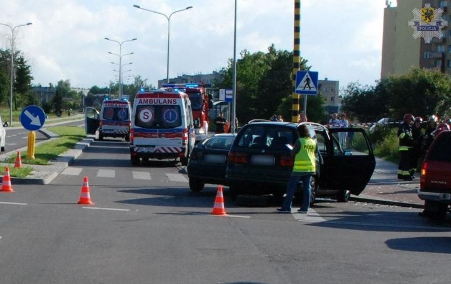 Ze wstępnych ustaleń wynika, że 65-letnia kierująca renault megane nie zatrzymała się przy znaku stop, wjechała na skrzyżowanie i zderzyła się z volkswagenem sharanem, którym kierował 33-latek. Do szpitala zostały przewiezione dwie osoby podróżujące samochodem renault. Badanie alkomatem wykazało, że osoby kierujące pojazdami uczestniczącymi w zdarzeniu drogowym były trzeźwe.