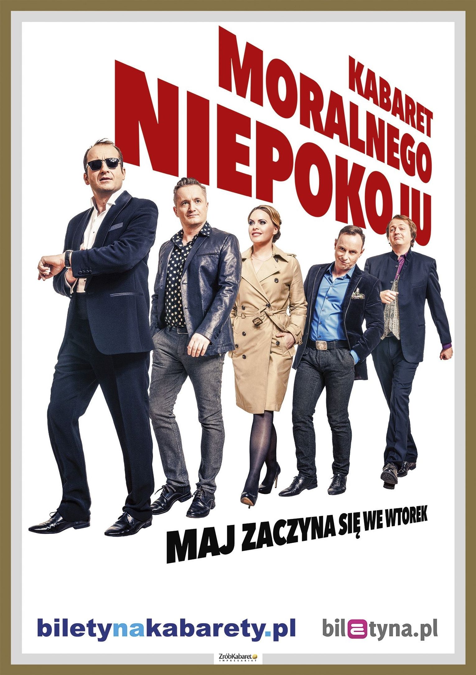 „Maj zaczyna się we wtorek” - taki tytuł nosi najnowszy program Kabaretu Moralnego Niepokoju. Nie ma w nim polityki, jest za to dużo humoru i Magda Stużyńska. - Stawiamy pytania, bo to jest istotą sztuki i odpowiadamy na nie, bo głupio tak o coś spytać i cisza - mówią kabareciarze. - Jak zaplanować wakacje i nie zwariować? Jak rozmawiać z teściem, żeby go nie zabić? Jak być nauczycielem i przetrwać szkolne zebranie? Wiemy, że nie tylko my mamy podobne takie problemy. Mają je też ludzie na Pomorzu, na Bahamach, w Nowym Jorku i w Czelabińsku. Dlatego nasz program jest na światowym poziomie. Dlatego zapraszamy na nasz „Maj” ludzi z całego świata (dobrze by było gdyby rozumieli po polsku). Naszą intencją jest stworzenie na czas spektaklu wspólnoty myśli i zabawy, bo tylko razem damy radę, bo razem to nam mogą nafiukać.