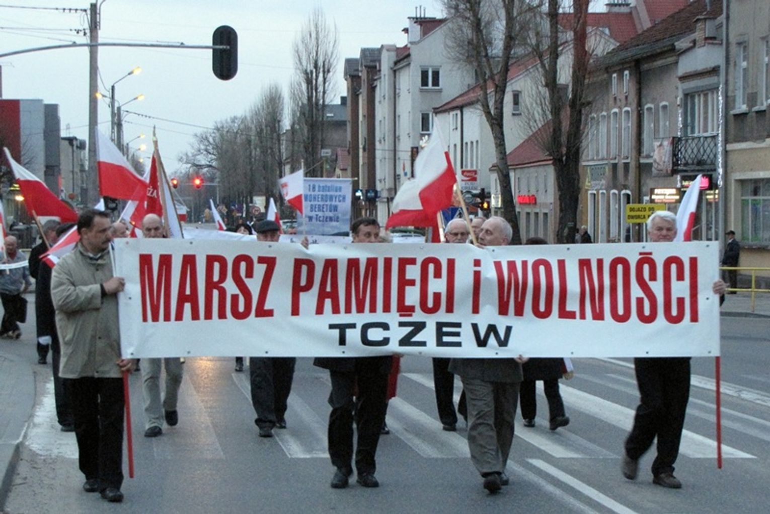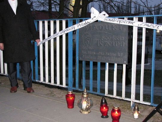 Uczestnicy marszu przeszli z pochodniami, zdjęciami tragicznie zmarłego prezydenta Lecha Kaczyńskiego i wielką biało – czerwoną flagą pod tablicę upamiętniającą postać Macieja Płażyńskiego.