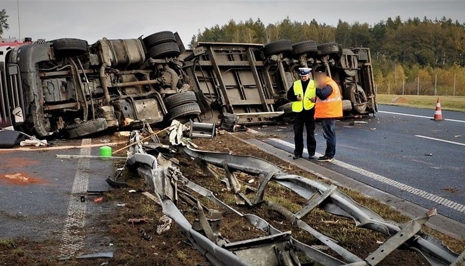 - Pracujący na miejscu zdarzenia funkcjonariusze wstępnie ustalili, że kierowca ciężarowej scanii z naczepą, jadąc w kierunku Gdańska, z niewiadomych przyczyn zjechał na prawe pobocze uderzając w bariery ochronne, a następnie przewrócił pojazd na bok powodując zablokowanie pasów ruchu w obu kierunkach – mówi st. asp. Dawid Krajewski, rzecznik prasowy KPP w Tczewie. - Niestety obrażenia jakich doznał 50-letni mieszkaniec powiatu malborskiego okazały się śmiertelne. W wyniku tego zdarzenia ruch na autostradzie odbywał się pasami awaryjnymi. Mundurowi pod nadzorem prokuratora z Prokuratury Rejonowej w Tczewie zabezpieczyli miejsce zdarzenia.