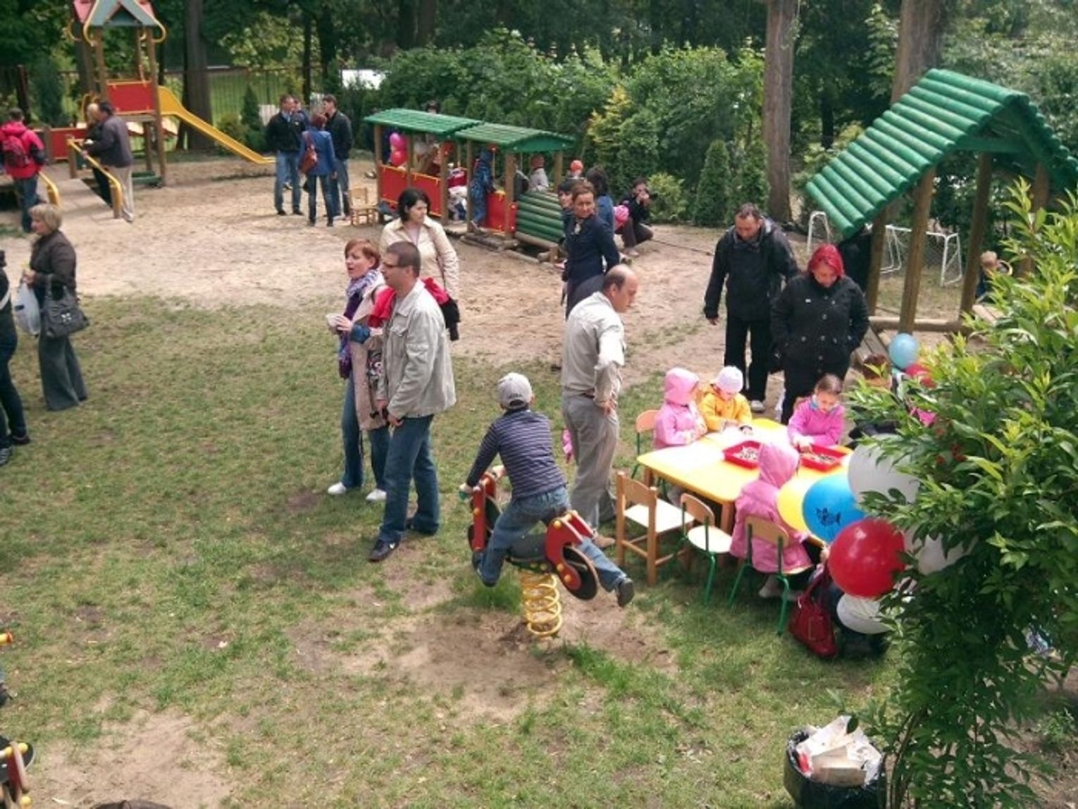 Urodzinowy piknik, przygotowany przez rodziców i wszystkich pracowników, odbył się w minioną sobotę. Wypieki i kiełbaski z grilla cieszyły się ogromnym powodzeniem. Na scenie zaprezentowały się dzieci ze wszystkich grup oraz absolwenci placówki. Mimo padającego deszczu całe rodziny dopingowały swoich milusińskich i nagradzały je brawami. W trakcie konkursu sportowego, niestety, nastąpiła gwałtowna ulewa z gradem, która zakończyła zabawę.