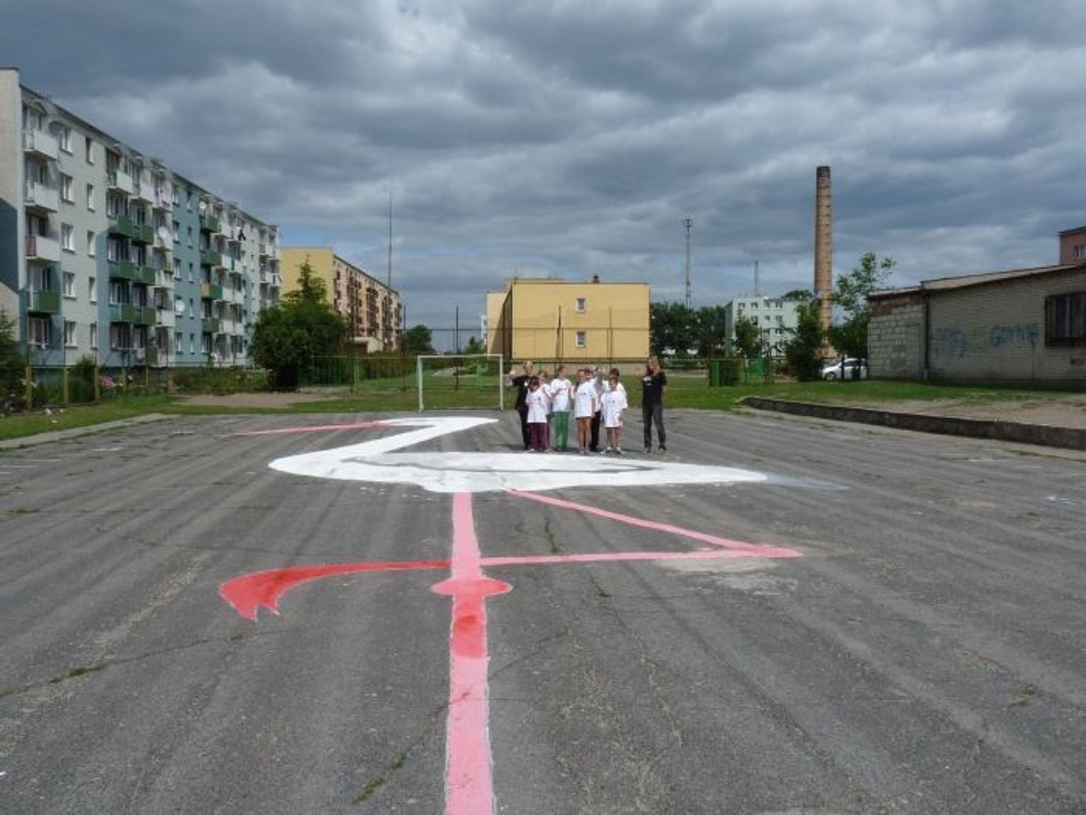 8-osobowa drużyna uczniów klasy IV c namalowała prawie 30-metrowego bociana białego na szkolnym boisku. Dodatkowo we wszystkich szkołach na terenie gminy Gniew malowane były mniejsze i większe bociany.