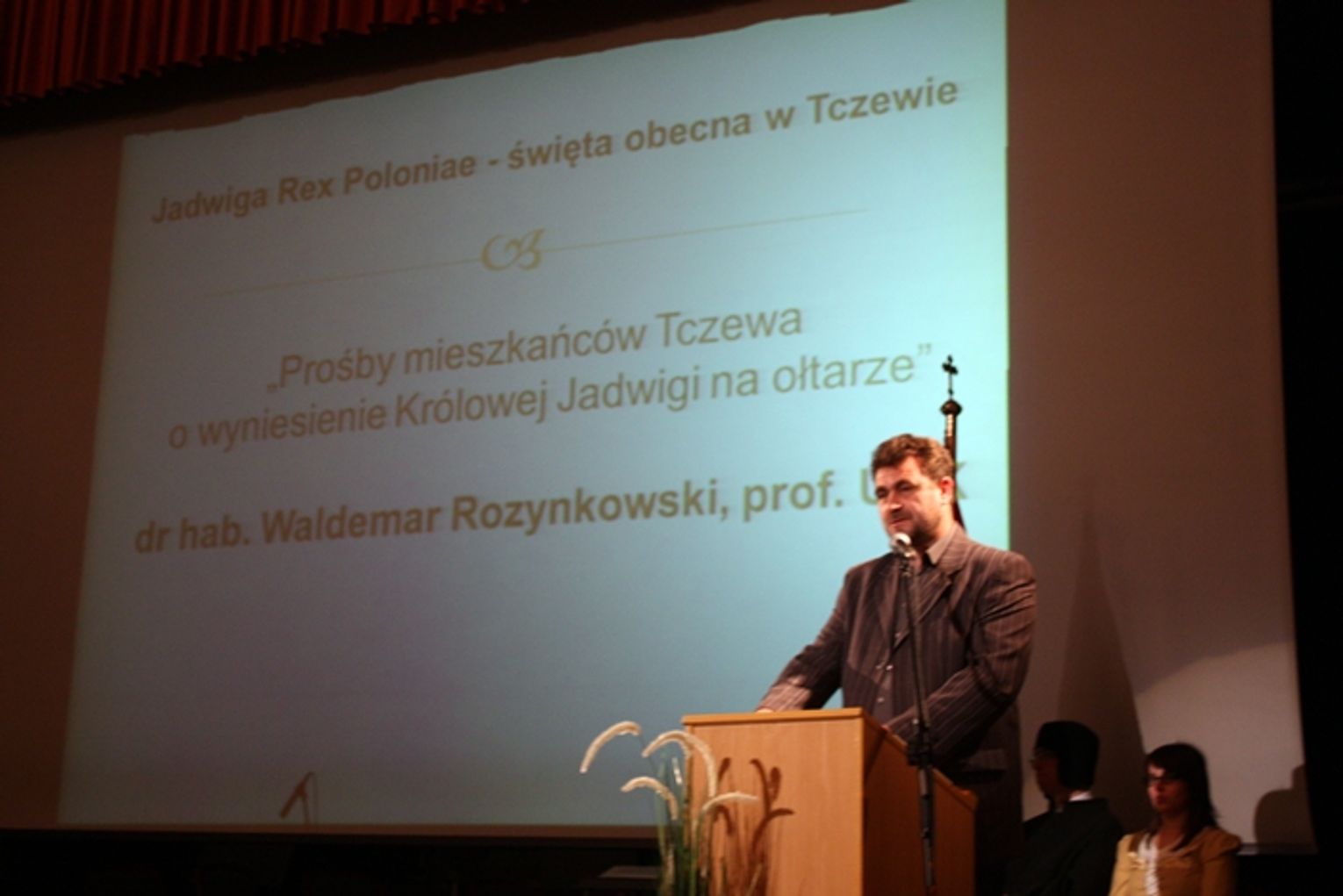 Na temat historii zabiegów i próśb mieszkańców Tczewa o wyniesienie królowej Jadwigi na ołtarze, opowiedział dr hab. Waldemar Rozynkowski, prof. Uniwersytetu Mikołaja Kopernika w Toruniu, który z pierwszą petycją zetknął się w archiwach nieszawskich. Krótko po odzyskaniu niepodległości przez Polskę, kwestię beatyfikacji traktowano jako element budowania tożsamości narodowej Polaków.