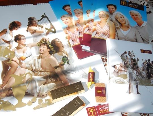 - Teraz po tej aferze jestem kłębkiem nerwów. Proszę zobaczyć. Otrzymałam kalendarz z wizerunkiem młodych ludzi przebranych za bóstwa olimpijskie. Wszyscy uśmiechnięci pokazują gestami co Amber Gold mi da. Otrzymałam czekoladki w kształcie sztabek złota, cukierki, ciasteczka, długopis… I te teczki z wizerunkiem szczęśliwej rodziny. Tylko brać pieniądze i zakładać lokaty!
