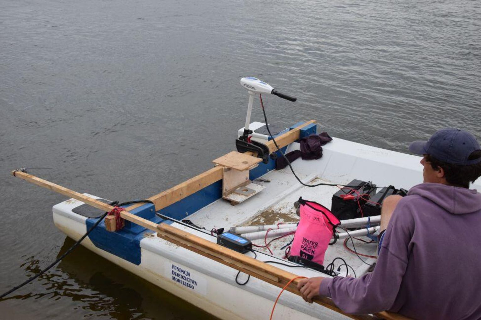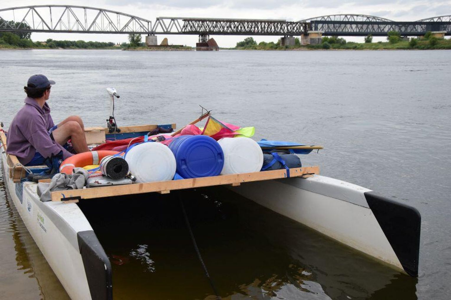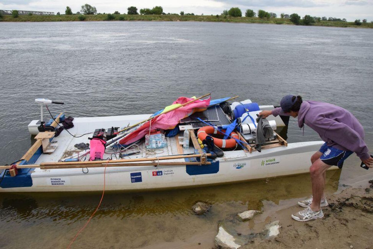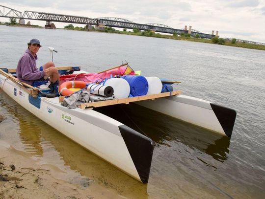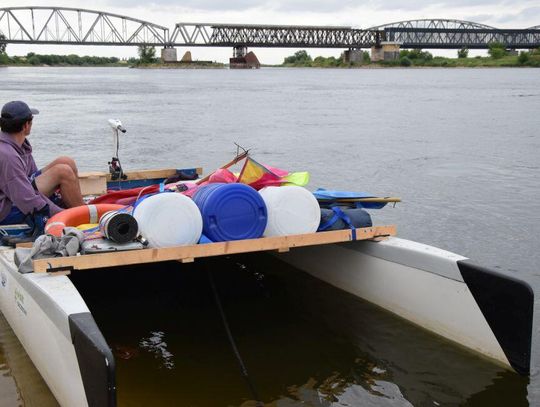 - Potem pojechaliśmy na testy, tego jak katamaran się sprawdza na wodzie. Wodowaliśmy go na Martwej Wiśle”. I tam sprawdzał się świetnie, ale teraz podczas rejsu widzę, że prąd Wisły sprawia nam problemy – stwierdził Antoni Smagoń. - Mamy namiot. Damy radę!