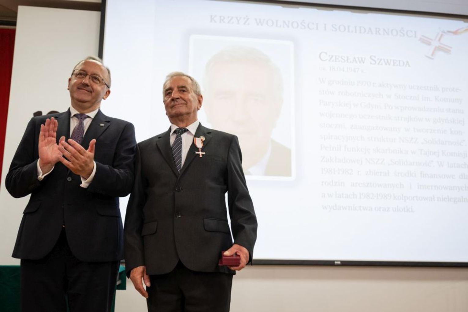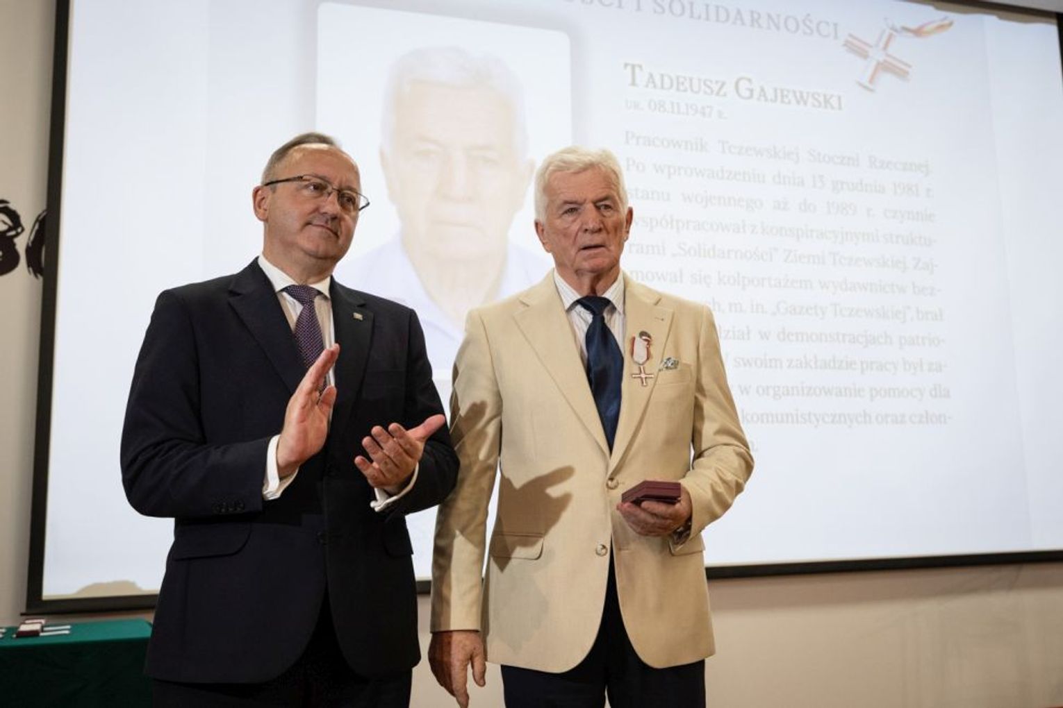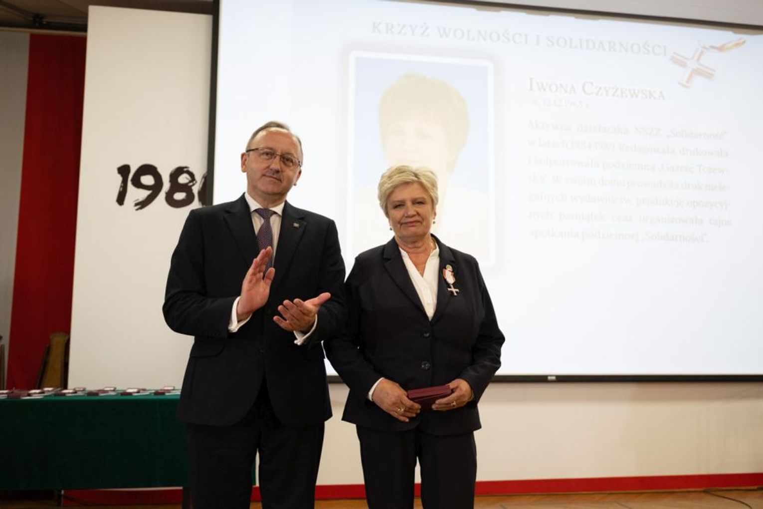 Krzyże Wolności i Solidarności otrzymało 27 działaczy opozycji antykomunistycznej, w tym pięć osób pośmiertnie. Zostali uhonorowani za odwagę i niezłomną postawę w walce o niepodległość i suwerenność Rzeczypospolitej Polskiej oraz za obronę praw człowieka w czasach komunistycznego zniewolenia. Wśród uhonorowanych znaleźli się mieszkańcy Tczewa: Iwona Czyżewska, Tadeusz Gajewski i Wojciech Olejniczak – obecni współpracownicy Wydawnictwa Pomorskiego, związani wprowadzaniem do obiegu od 1982 r. nielegalnej „Gazety Tczewskiej”, a także kolportażem druków i ulotek tzw. bibuły pochodzącej z „Solidarności” i jej środowisk.