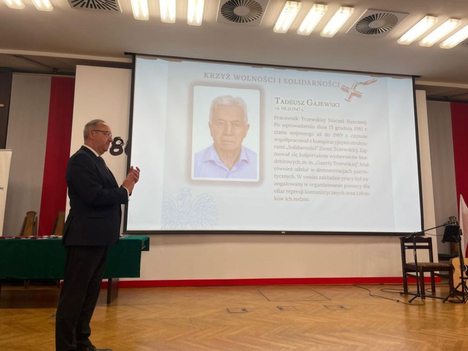 - Państwa obecności – dam i kawalerów Krzyża Wolności i Solidarności, działaczy Związku Zawodowego Solidarności, kombatantów i represjonowanych – oznacza, że wolność, którą dziś się cieszymy, nie była nam dana na zawsze – mówił wiceprezes Karol Polejowski. - Nie zawsze tak było, bo w XX wieku Polacy częściej zmagali się ze zniewoleniem niż korzystali z dobrodziejstw wolności. Jesteście ostatnim pokoleniem, które musiało osobiście walczyć o wolność. To dzięki Wam – wstającym z kolan przed władzą komunistyczną – Polska odzyskała swobodę i godność.