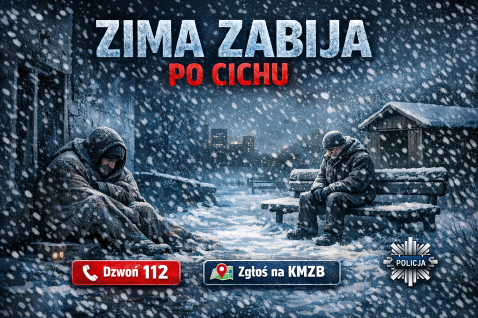 Gdy temperatury spadają poniżej zera, zagrożenie wychłodzeniem organizmu staje się śmiertelnie realne. Każdej zimy Policja apeluje: nie bądźmy obojętni. Jeden telefon może uratować czyjeś życie – szczególnie osób bezdomnych, starszych, samotnych i będących pod wpływem alkoholu.
