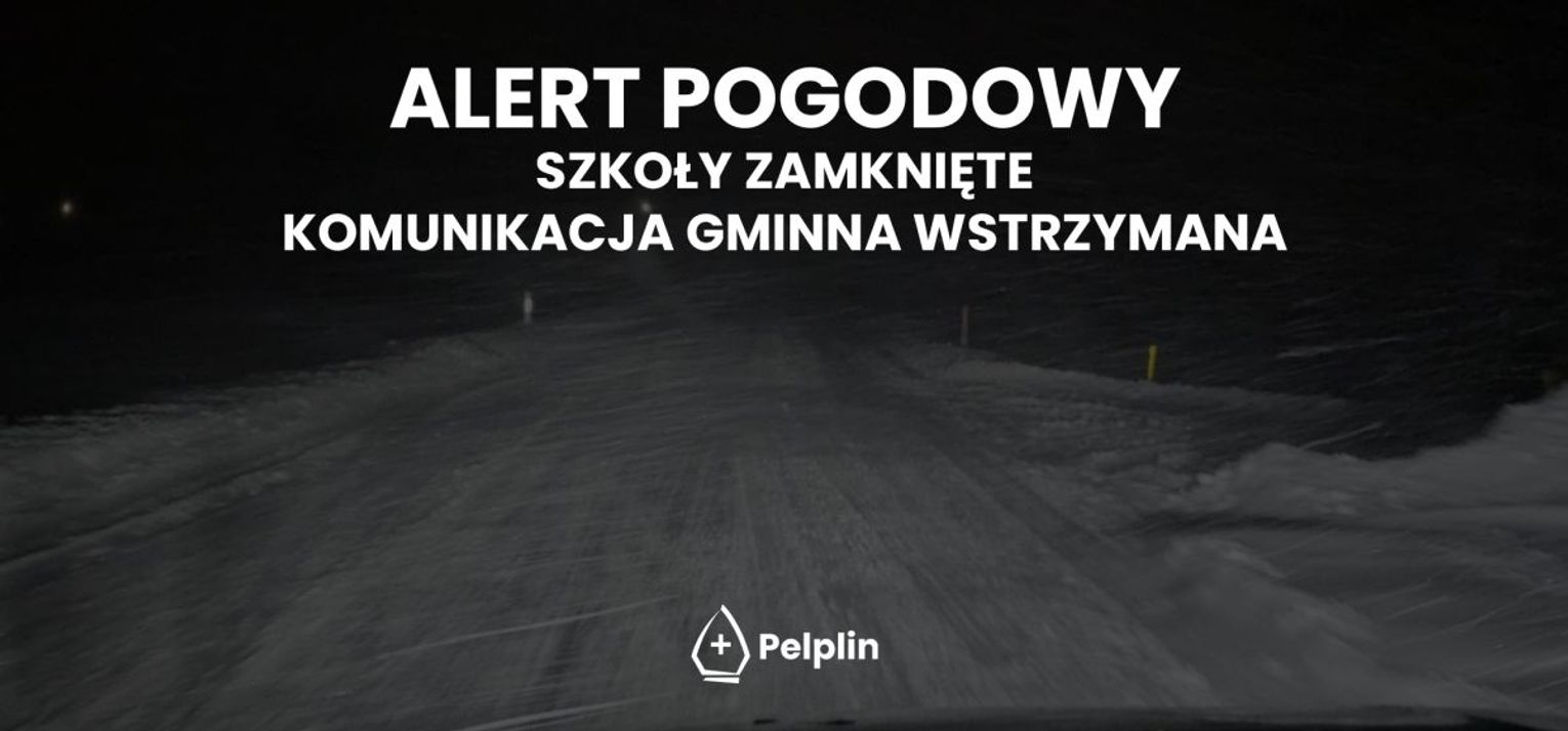 W związku z sytuacją meteorologiczną oraz znaczącymi utrudnieniami występującymi na drogach publicznych na terenie gminy Pelplin, utrudniającymi dotarcie do szkół oraz zagrażających bezpieczeństwu i zdrowiu uczniów w dniu 12 stycznia 2026 r. zawiesza się planowane zajęcia w przedszkolach i szkołach publicznych, dla których organem prowadzącym jest gmina Pelplin.