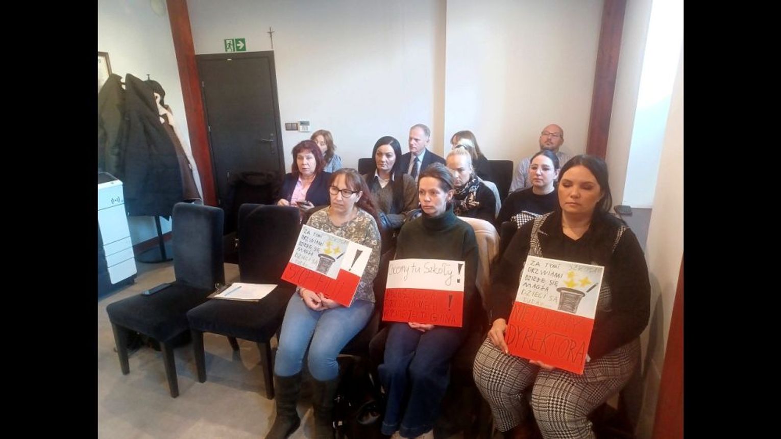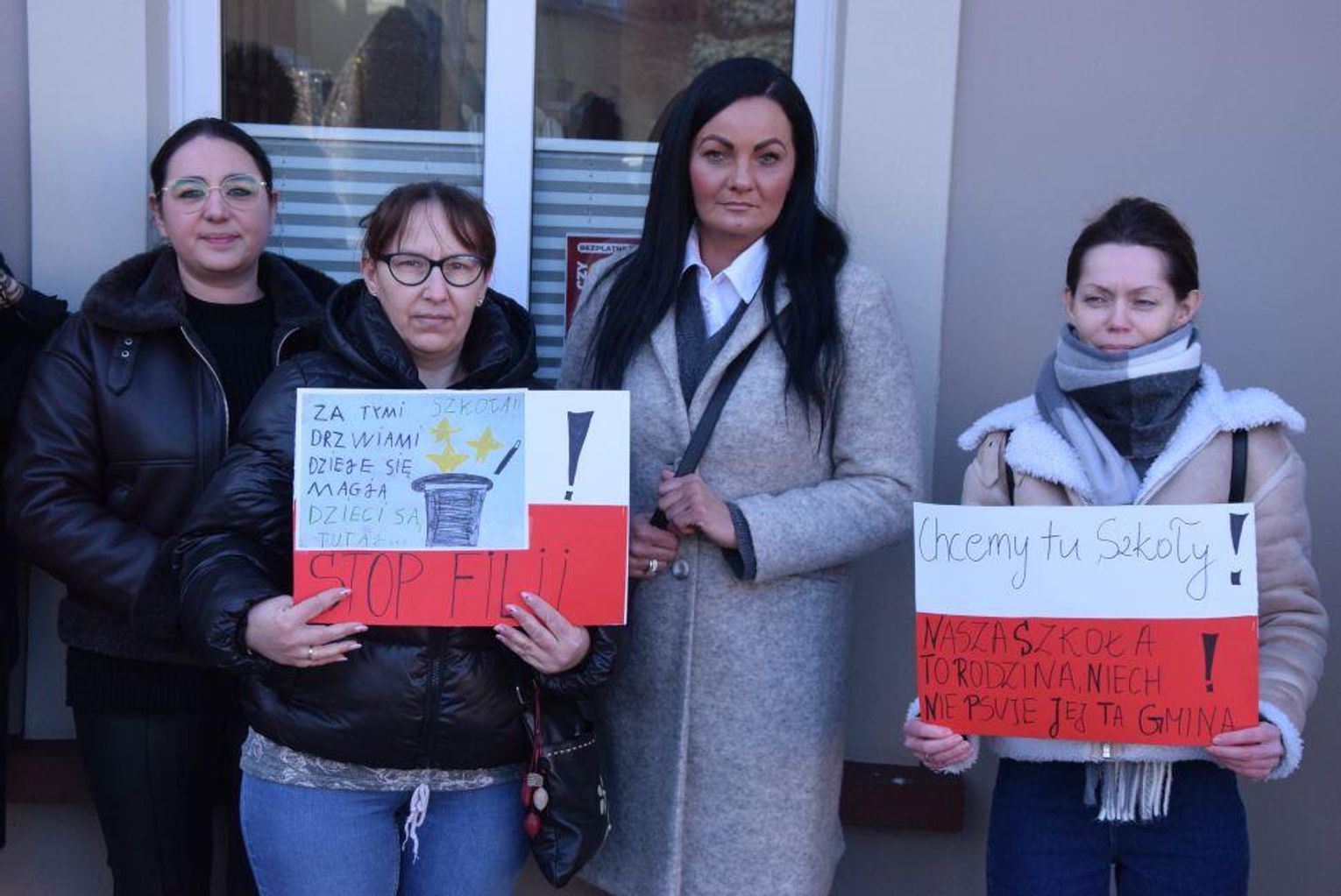 Rodzice (w większości matki) uczestniczyli w obradach jako goście. Przez całą sesję panie trzymały w rękach transparenty z napisami o obronie szkoły i obecnej dyrektor. Zarówno burmistrz jak i środowisko szkolne uważają, że sprawa ma charakter polityczny. Burmistrz stanowczo zaprzeczył, by planowano przekształcenia w filię, a tym bardziej likwidację placówki w przyszłości (- pokażcie mi dokument, które mówiłby o tym – dowodził).
