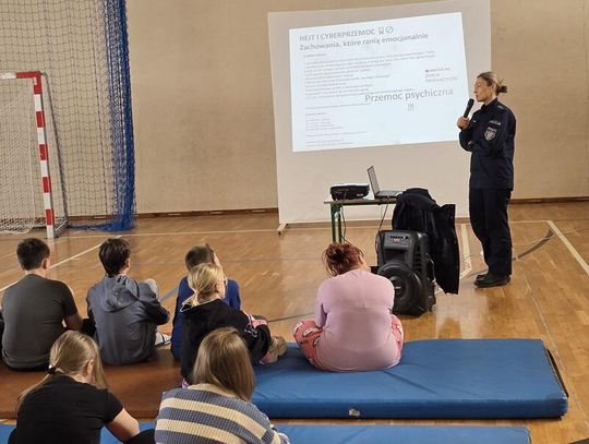 Policyjna profilaktyk odwiedziła Szkołę Podstawową w Dąbrówce Tczewskiej, gdzie przeprowadziła zajęcia dla uczniów klas 4–8. Tematem spotkania był hejt w Internecie oraz odpowiedzialność za publikowanie i przerabianie zdjęć innych osób. Podczas rozmowy policjantka wyjaśniła, czym jest hejt i dlaczego nawet „żart” w sieci może stać się dla kogoś poważnym problemem. Uczniowie dowiedzieli się, że publikowanie zdjęcia bez zgody osoby widocznej na fotografii, a tym bardziej jego przerabianie w celu ośmieszenia czy skompromitowania kolegi, koleżanki lub osoby pełniącej funkcję publiczną, może mieć konsekwencje prawne. Policjantka podkreśliła, że w Internecie nic nie ginie. Raz udostępnione zdjęcie czy komentarz mogą krążyć w sieci przez wiele lat. Takie działania mogą prowadzić do odpowiedzialności przed sądem, a także do poważnych konsekwencji w szkole. Nie zabrakło także rozmowy o empatii i wzajemnym szacunku. Uczniowie aktywnie uczestniczyli w spotkaniu, zadawali pytania i dzielili się swoimi doświadczeniami.