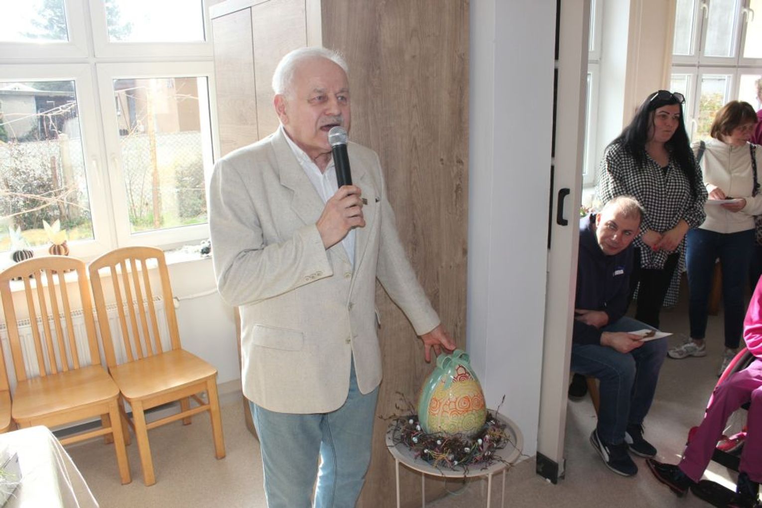 Kiermasz rozpoczęła kierownik WTZ - Anna Kozioł, która podkreśliła jak wiele pracy wiąże się z przygotowaniem wszystkich tych wyrobów świątecznych. Warsztatowcy wraz z terapeutami przez cały rok ciężko pracują, by na koniec w przededniu Wielkanocy zaprezentować swoje kramy gościom. Do zabawy zagrzewał uczestników Ludwik Kiedrowski, który co roku staje się konferansjerem „wielkanocnego kiermaszu”. Także tym razem poprowadził tradycyjną licytację ceramicznego jaja.