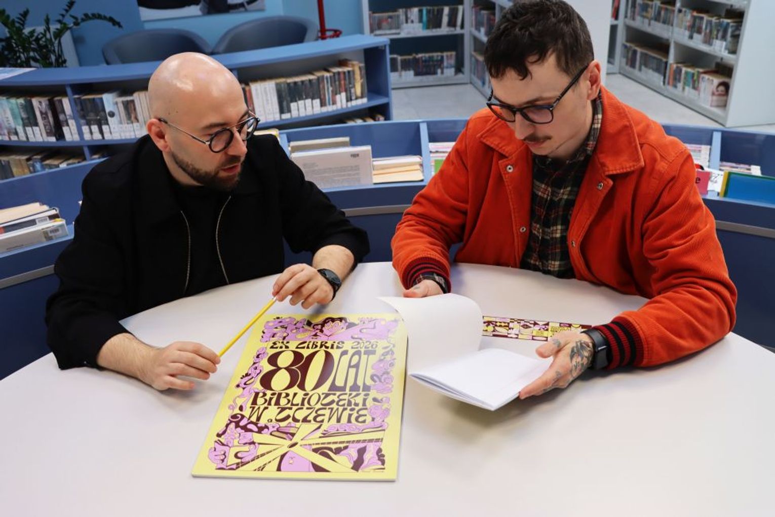 W historii tczewskiej biblioteki przewinęło się wiele exlibrisów. Każdy z nich był świadectwem czasu, estetyki i potrzeb. Najnowszy – zaprojektowany w ramach jubileuszu – jest jednak szczególny. Kolorowy, odważny, o nietuzinkowej formie, łączy tradycję z nowoczesnością i wyraźnie odcina się od wcześniejszych, bardziej klasycznych rozwiązań.