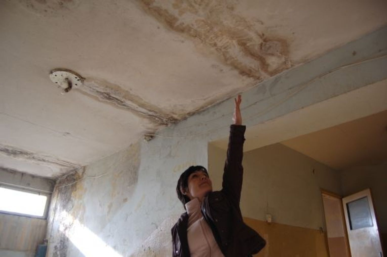 Stan dachu i stropów jest opłakany. Oprócz brudu na korytarzach rzucają się w oczy regularne zacieki na najwyższym piętrze. Lokatorzy z ostatniej kondygnacji twierdzą, że woda wdziera się wszędzie. Podkładają miski, nawet lampy się napełniają. Sam dach jest kryty tylko papą, która załamuje się nawet pod niewielkim ciężarem. Gdy wspomnieliśmy, że lokatorzy mogą być wysiedleni, a budynek będzie rozebrany, niektórzy nawet się ucieszyli.