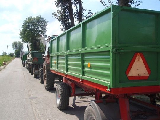 Mijamy kilka kolejnych zestawów traktorowych z przyczepami pełnymi czarnego rzepaku. Przy zatoczce przystanku autobusowego stoi traktor z tablicami tczewskimi. To jeszcze około kilometr do elewatora.