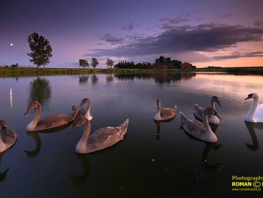 - Mam swoje ulubione miejsca. Zapamiętuję je i gdy tylko jest odpowiednie światło wracam tam. W Gręblinie, gdzie mieszkam, znam każdy kąt, w tym mały staw - który żartobliwie nazywam kałużą - gdzie zostało zrobione wyróżnione zdjęcie. Było wówczas ładne światło, piękny krajobraz z zachodzącym słońcem i to właśnie na to głównie się nastawiłem. Łabędzie same do mnie podpłynęły, przyzwyczajone chyba do karmienia. A może z ciekawości? Ustawiłem się ze statywem i czekałem. Robiłem zdjęcia, a łabędzie - cała rodzina, rodzice i siódemka młodych - podpływały bliżej i bliżej. W końcu kilka razy „strzeliłem” aparatem.