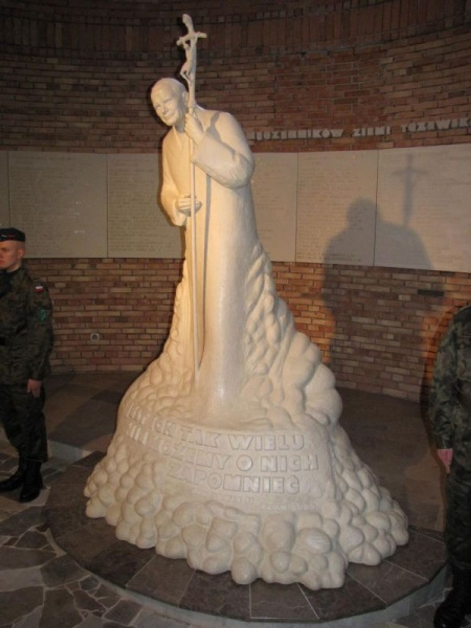 W centrum Kaplicy Męczenników stoi pomnik Jana Pawła II autorstwa Stanisława Szwechowicza. Pod postacią Ojca Świętego umieszczono cytat z jednej z jego homilii: „Jest ich tak wielu. Nie możemy o nich zapomnieć.” Listę 407 zamordowanych mieszkańców Tczewa i powiatu tczewskiego przygotowali tczewscy historycy - Kazimierz Ickiewicz, Krzysztof Korda, Małgorzata Kruk i Jacek Cherek z Oddziału Kociewskiego Zrzeszenia Kaszubsko-Pomorskiego. Ofiary II wojny światowej mogły też zgłaszać ich rodziny. Do listy dołączono 35 nazwisk księży zamordowanych m. in. w tczewskich koszarach, którą przygotował ks. prof. Anastazy Nadolny.