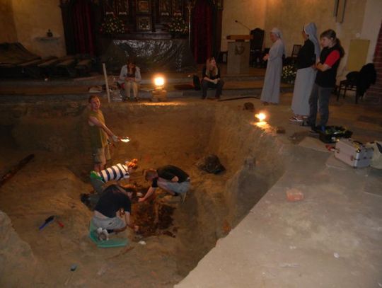 - Dziś już wiemy, żadnego tajemnego przejścia nie było - wyjaśniają archeolodzy. - Poszukiwacze przygód przeszukiwali to miejsce jeszcze w 1974 r. Wiemy o tym, ponieważ pod płytą nagrobną osłoniętą w kaplicy Matki Bożej natrafiliśmy na list w butelce z tego okresu. W nim przeczytać można m. in. „z chwilą zdjęcia płyty okazało się, że był to grobowiec kryjący szczątki ludzkie. Po dalszej penetracji okazało się, że kościół nie posiada podziemi-piwnic”.