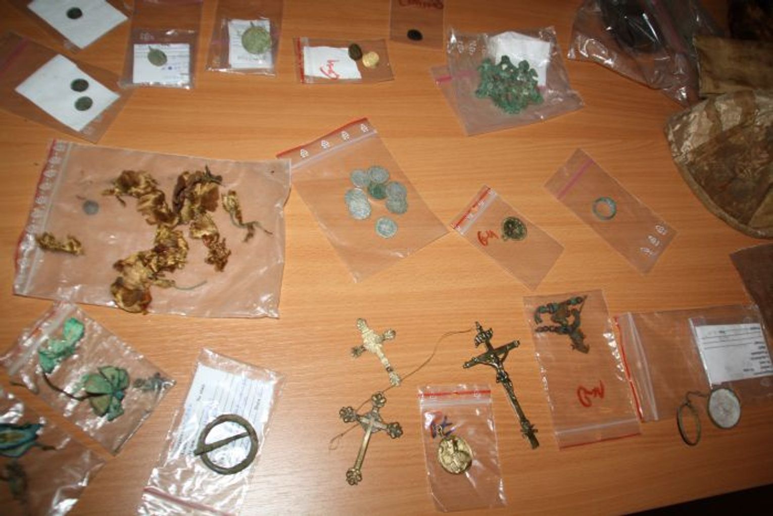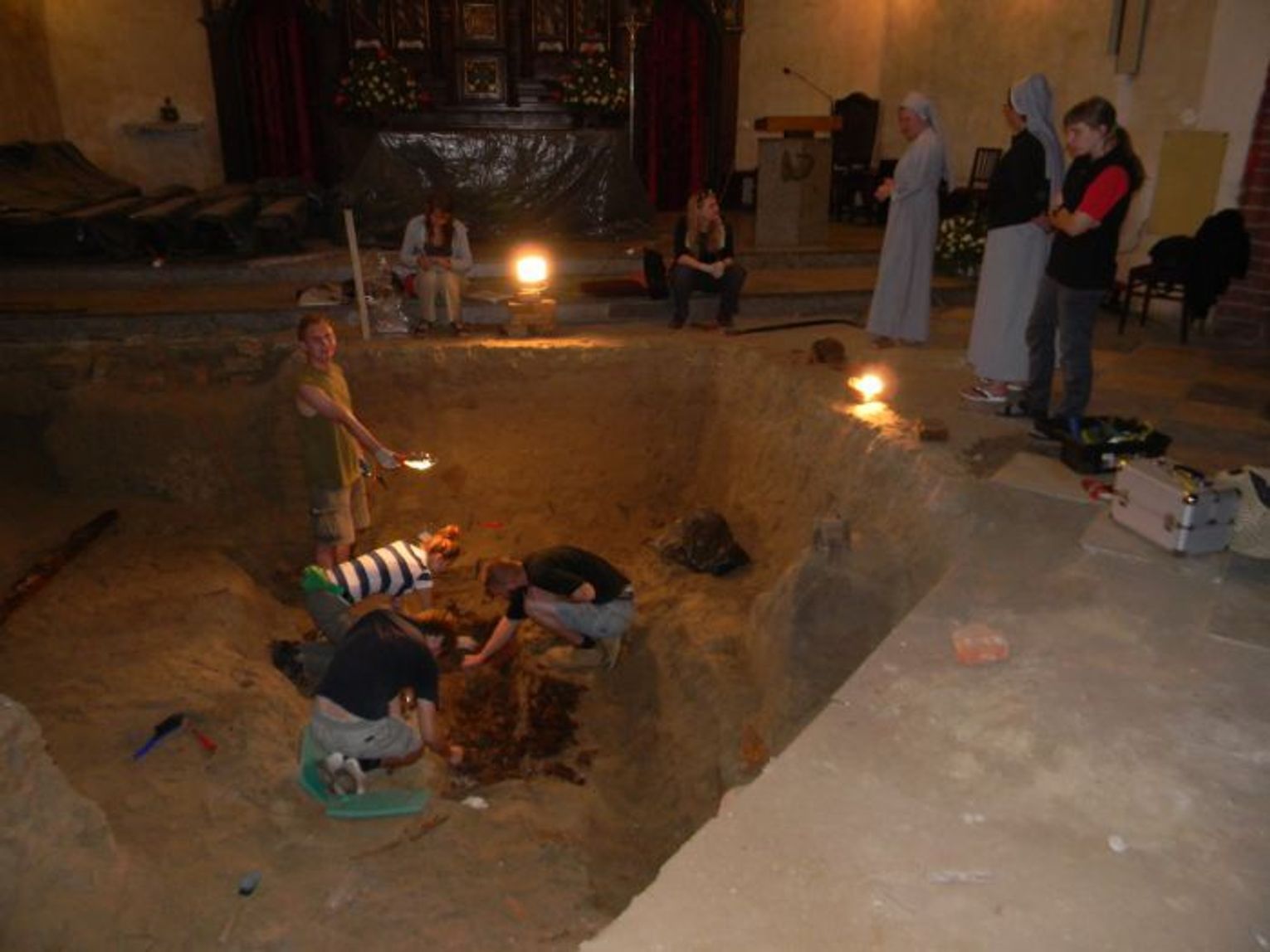 Wśród pochówków badaczom udało się znaleźć dobrze zachowane okulary, różańce, męskie pierścienie, sztuczne kwiaty, ale też monety, w tym te pochodzące z ok. 1420 r. Co ciekawe w świątyni panuje tak specyficzny klimat, że archeologom udało się odkopać szkielety z bardzo dobrze zachowanymi włosami.