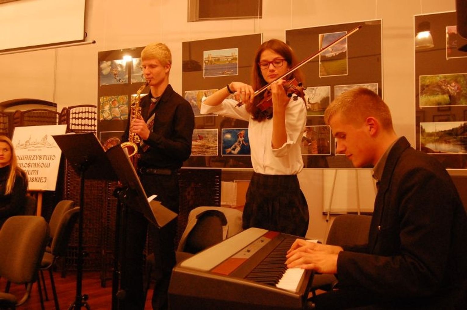 Dodajmy, że pan Kazimierz na co dzień jest kierowcą Urzędu Miejskiego w Tczewie i to z całkiem sporą kilometrówką na koncie! Kto by się spodziewał, że również nieźle radzi sobie jako autor poetyckich liryków o jesieni. Przed jego wygłoszeniem był odrobinę speszony, bo zaproszono go do tego w chwilę po tym jak Janek Lewandowski na wiolonczeli wspaniale zagrał „Rapsodię Węgierską” (przy akompaniamencie prof. Eleny Aleksiejuk) Utwory klasyczne były wplecione pomiędzy poszczególne grupy recytacji. Wszystkich zaskoczyła Arleta Kotlęga, która barwnie zaśpiewała piosenkę grupy Queen.