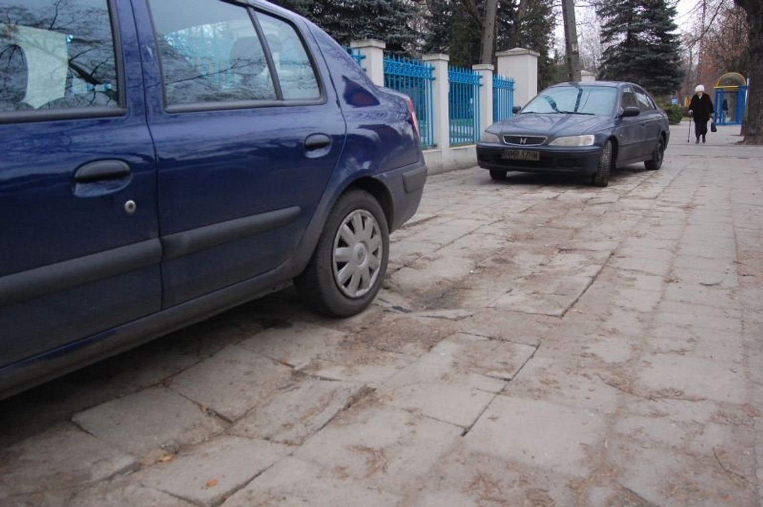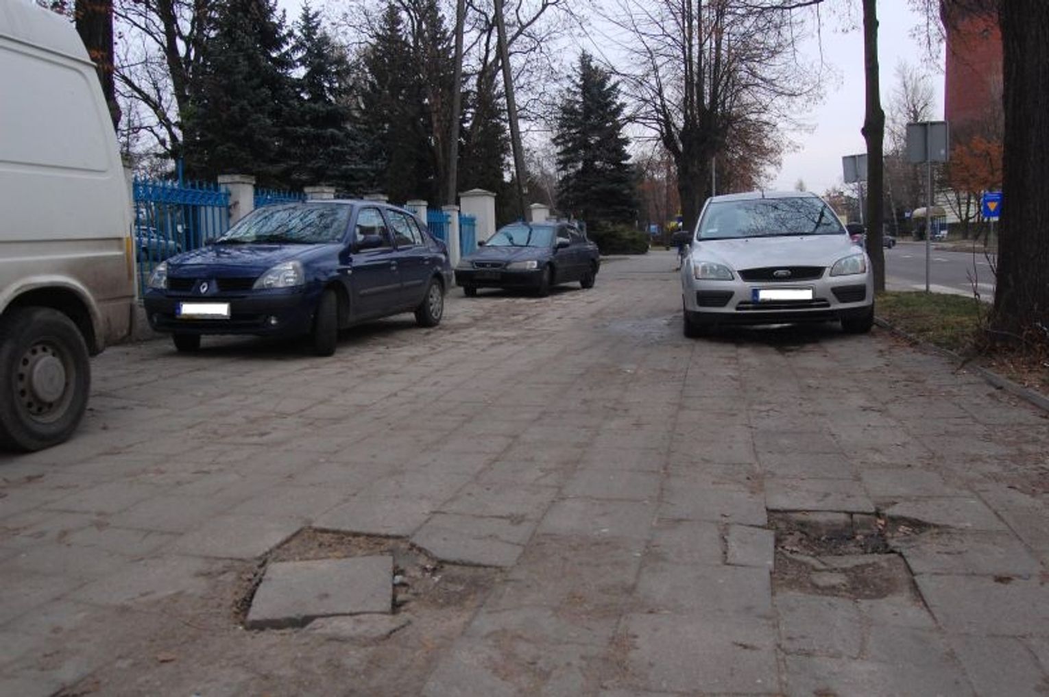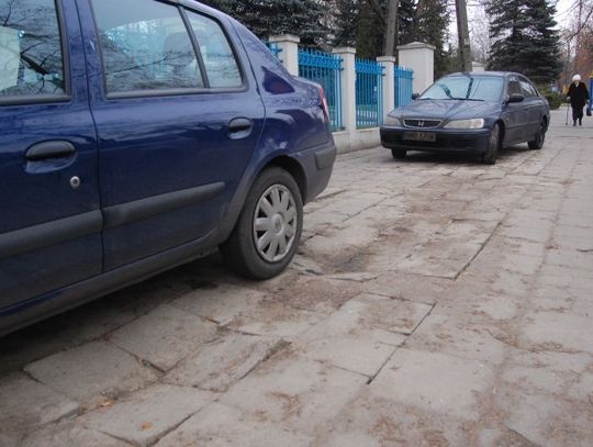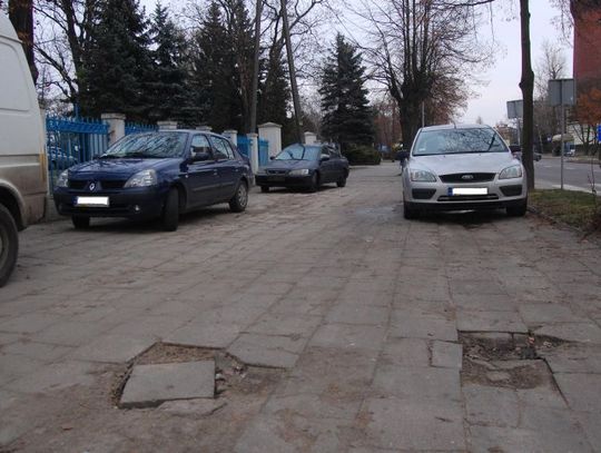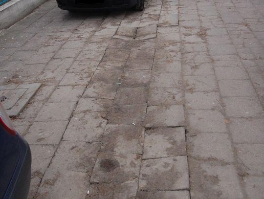 Zniszczony chodnik przed szpitalem
