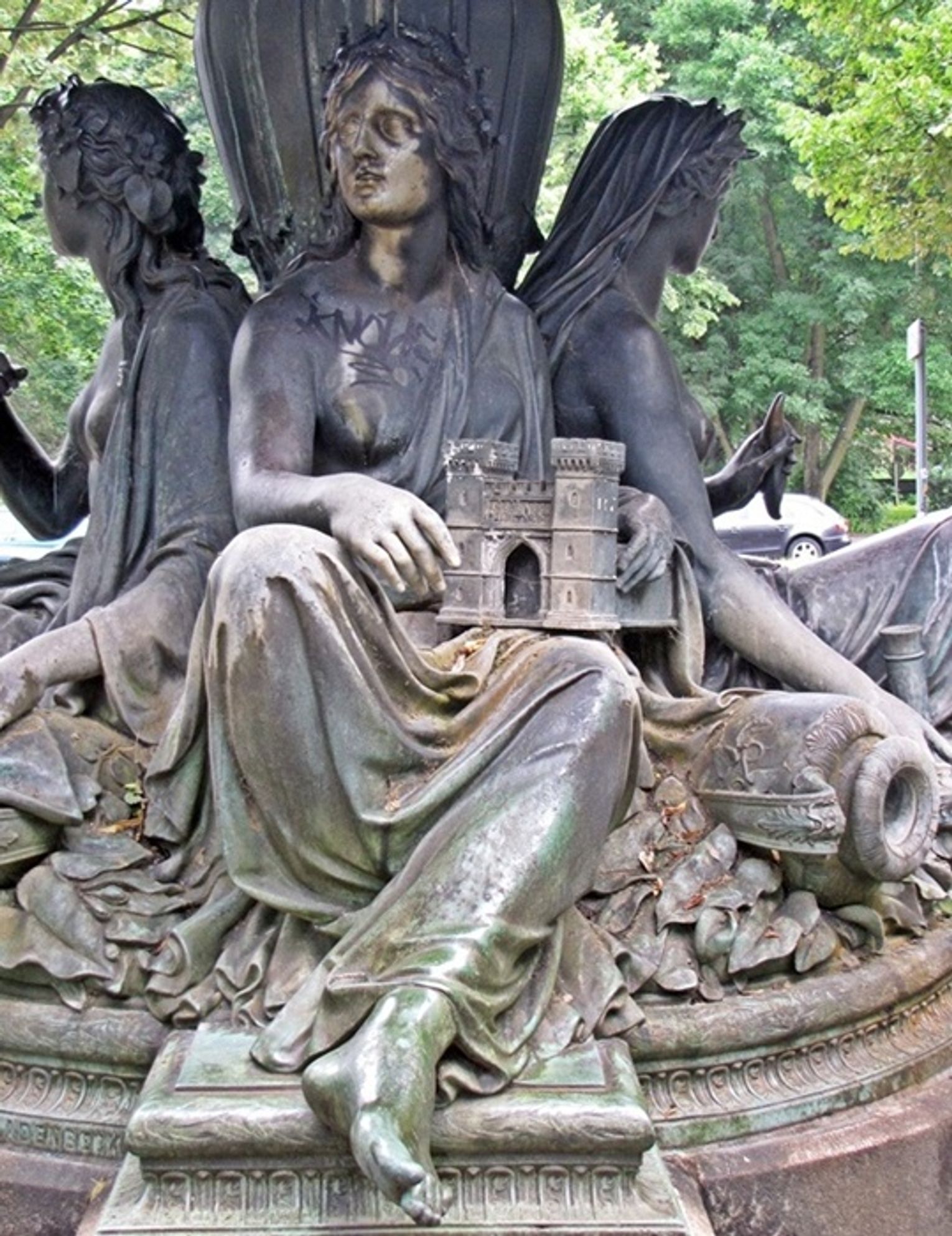 Ale chyba najpiękniejszy tczewski ślad w Berlinie znajdziemy na rogi ulic Urban i Grimmstrasse. Mowa o fontannie dedykowanej pruskiemu feldmarszałkowi Friedrichowi von Wranglowi. Zaprojektowana w 1877 r. przez berlińskiego rzeźbiarza Hugo Hagena, wysoka na ponad sześć metrów fontanna przedstawia personifikacje czterech rzek – Wisły, Renu, Odry i Łaby. Wisła trzyma w swoich dłoniach fragment… Mostu Tczewskiego.