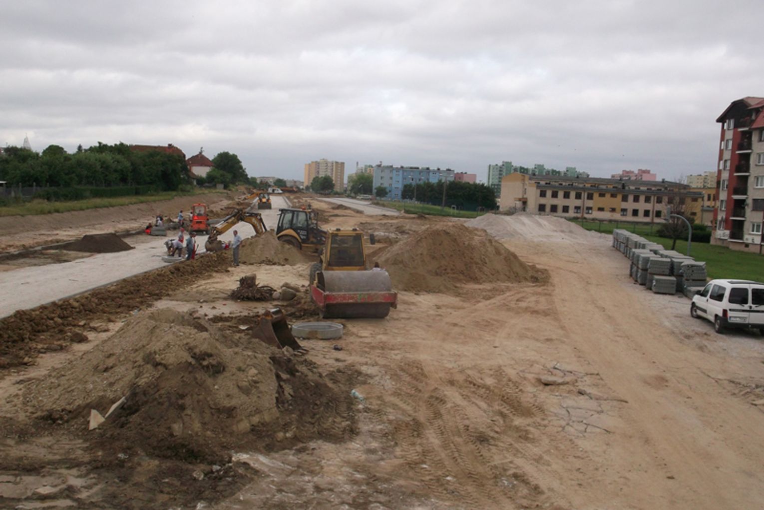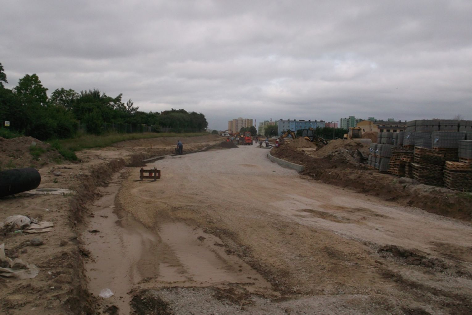 Ulica będzie miała 7m szerokości, na chwilę obecną na drodze położona jest podbudówka, na którą położymy asfalt.