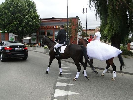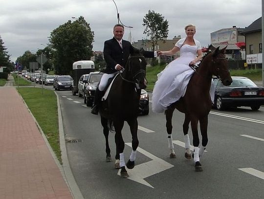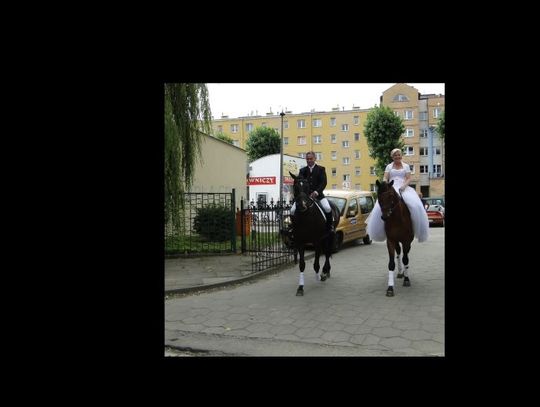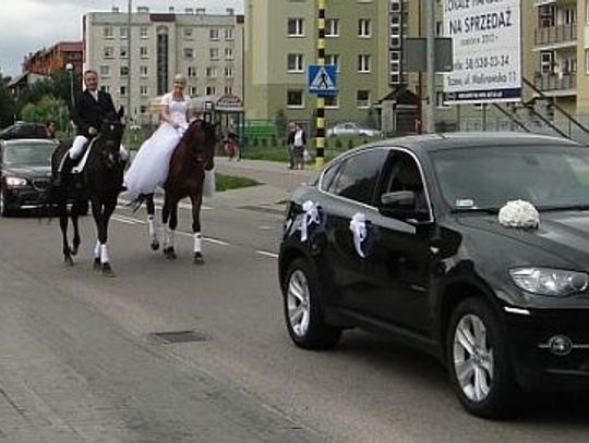 Nowożeńcy do USC, konie do... stajni