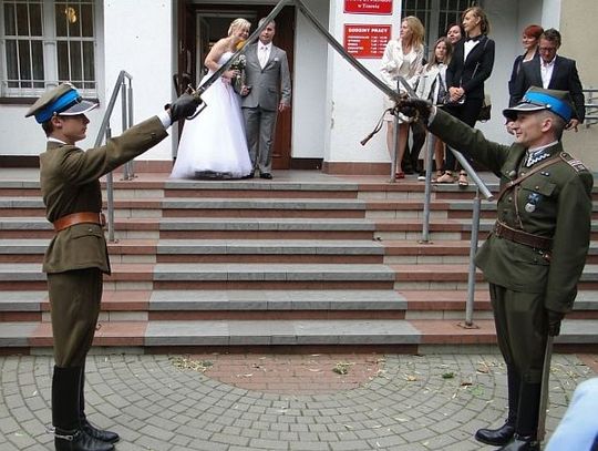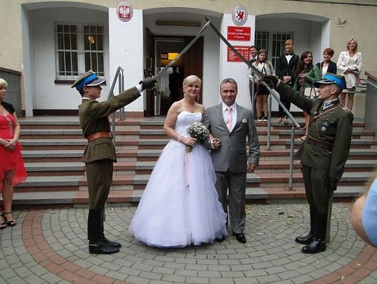 Pod Urzędem Stanu Cywilnego para młoda oddała rumaki w ręce zaprzyjaźnionych koniarzy, a sama udała się... zmienić odzież. Bartek założył garnitur ślubny, a Danka zamieniła bryczesy i oficerki na bardziej stosowne na taką okoliczność odzienie. Konie zostały załadowane do przyczep i odwiezione do stajni, a nowożeńcy po ślubowaniu i poświadczeniu tego stosownymi podpisami i nałożeniu obrączek, odebrali mnóstwo życzeń, do których i „Gazeta Tczewska” się przyłącza.