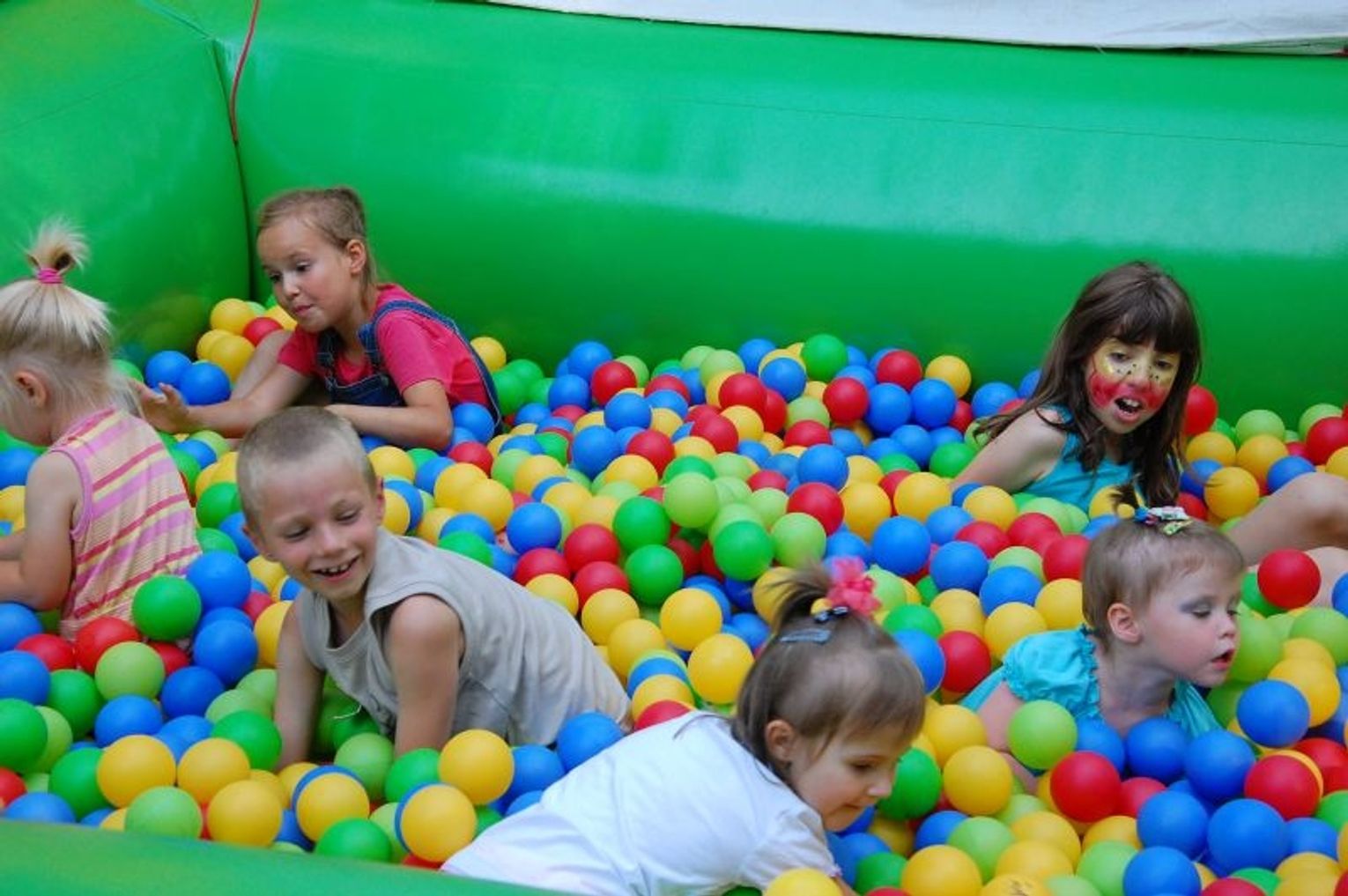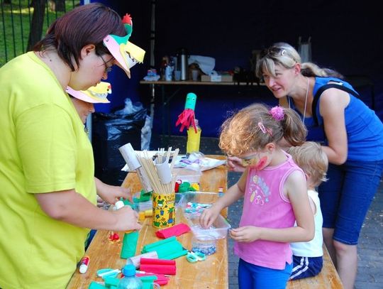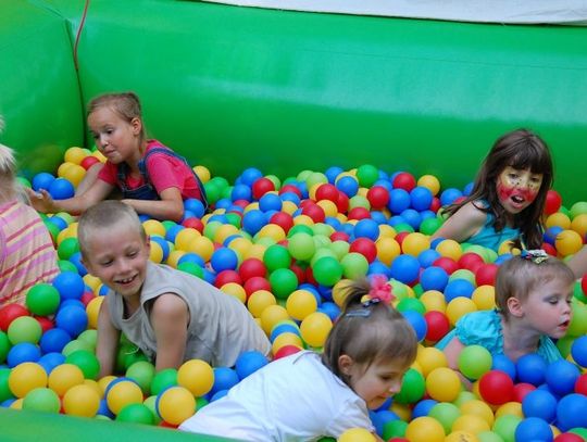 Kolejki dzieci stały przed zamkami dmuchanymi i basenami z kolorowymi piłeczkami.