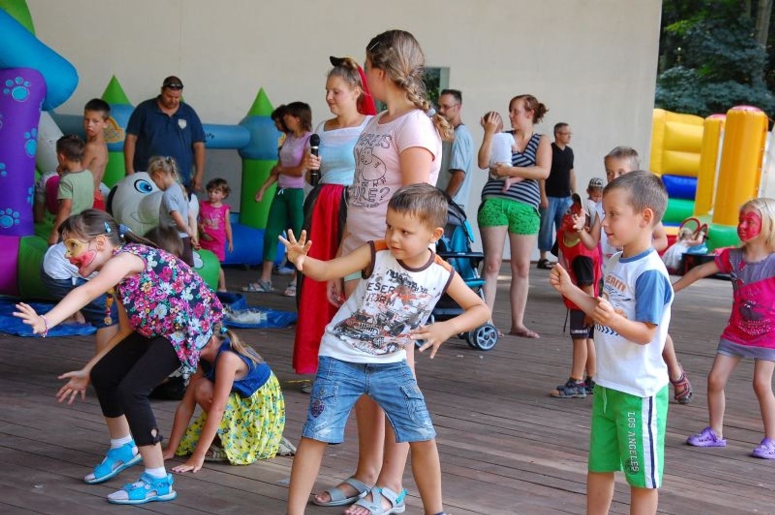 Na scenie amfiteatru jedna z księżniczek organizowała najmłodszym zabawy sprawnościowe.