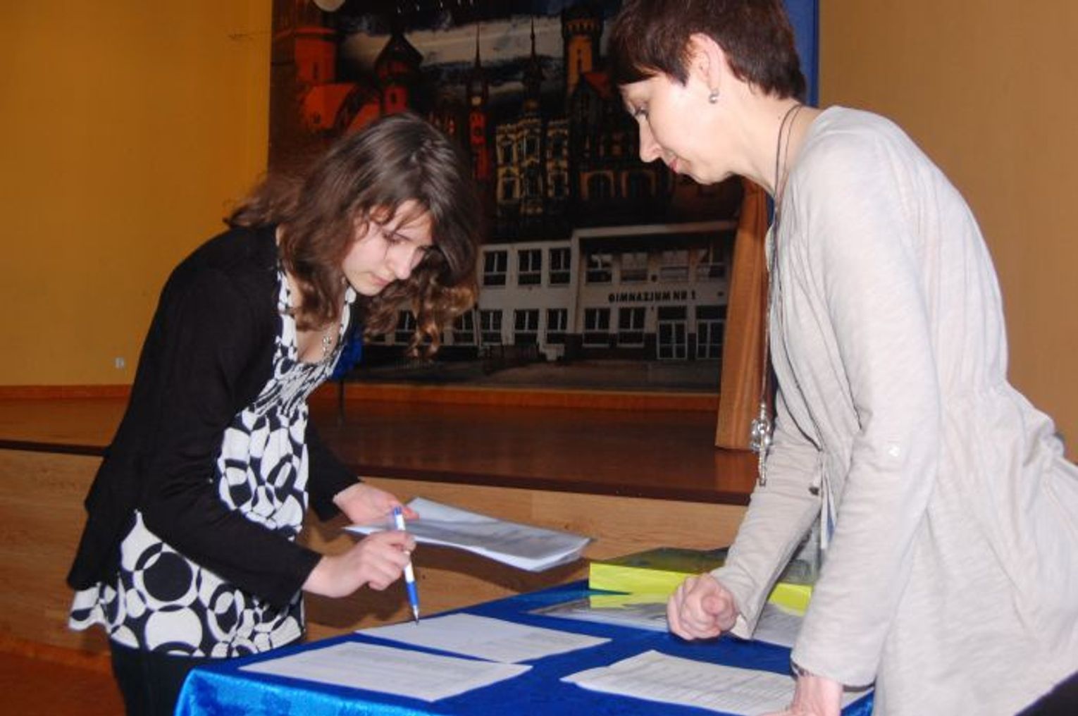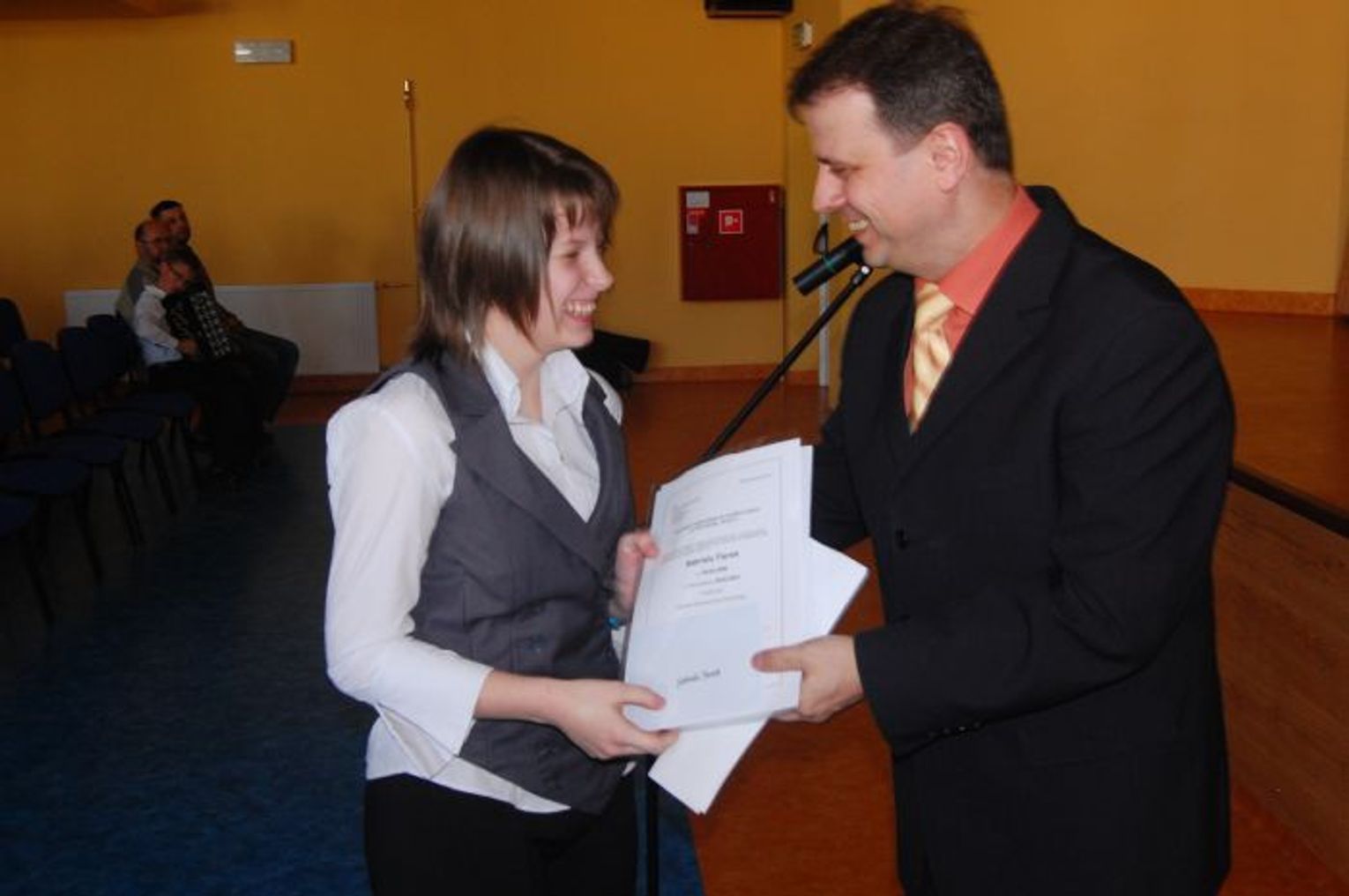 Podczas uroczystości młodzież była odświętnie ubrana. Mimo późnego popołudnia zdecydowana większość wyróżnionych przybyła do nowej auli gimnazjum.