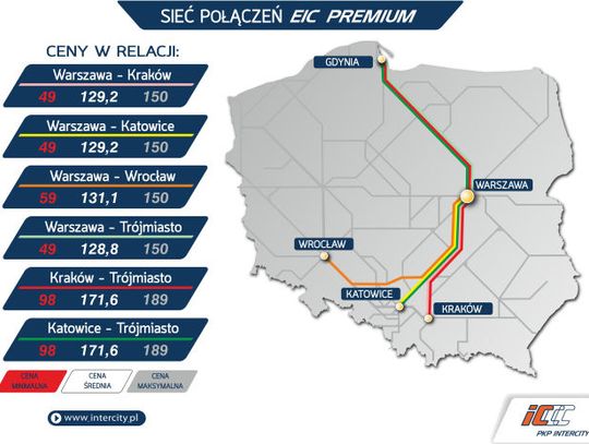 14 grudnia br. na polskich torach zadebiutuje nowa kategoria pociągów PKP Intercity: EIC Premium (EIP). Nowoczesne składy będą kursować pomiędzy Warszawą a Trójmiastem, Krakowem, Katowicami oraz Wrocławiem, a cenowo będą dostępne dla każdego.