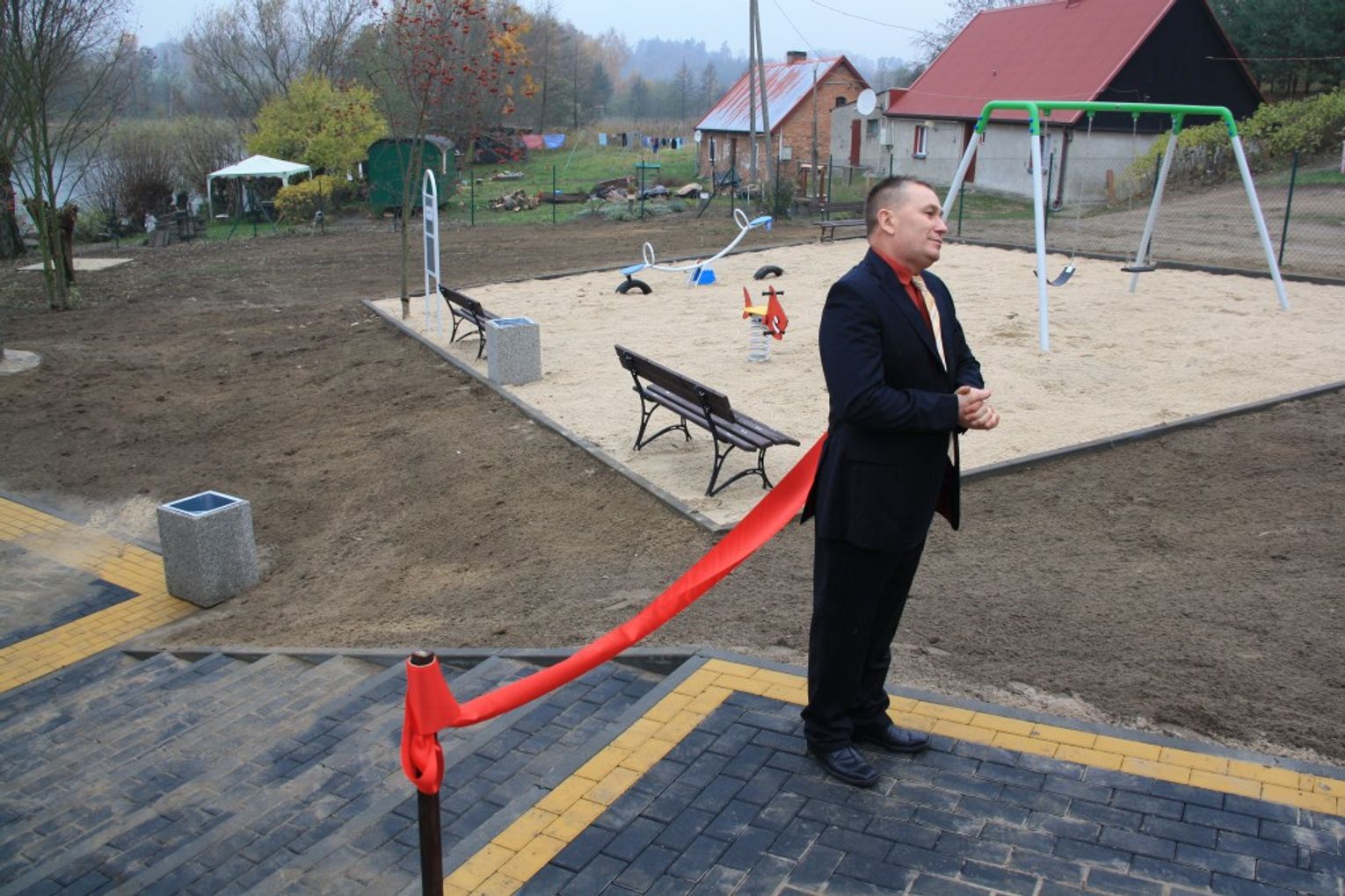 Uroczyste otwarcie odbyło się w sobotę, 8 listopada o godz. 14.00 w Półwsi. Wstęgę przecięli wspólnie: burmistrz Maria Taraszkiewicz-Gurzyńska, sołtys Półwsi Janusz Ruliński oraz proboszcz parafii pw. św. Jana Chrzciciela Roman Ossowski. Duchowny pobłogosławił obiekt, życząc wszystkim owocnie spędzanego na nim czasu, wyrażając jednocześnie nadzieję na bezpieczną zabawę nad jeziorem. Radości z otwarcia nie kryli też burmistrz i sołtys wsi.