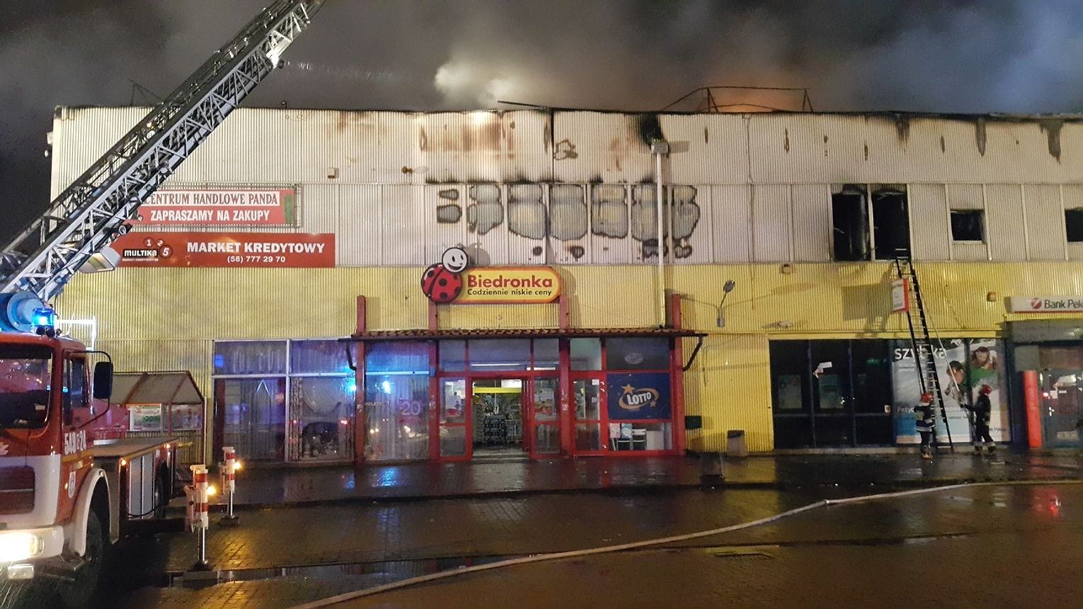 Dzisiejszej nocy wybuchł pożar w domu handlowym "Retman" przy ul. Wojska Polskiego w Tczewie. Na miejscu pracowało 16 zastępów straży pożarnej. Budynek doszczętnie spłonął w dużej części. Na szczęście nikt nie został poszkodowany.