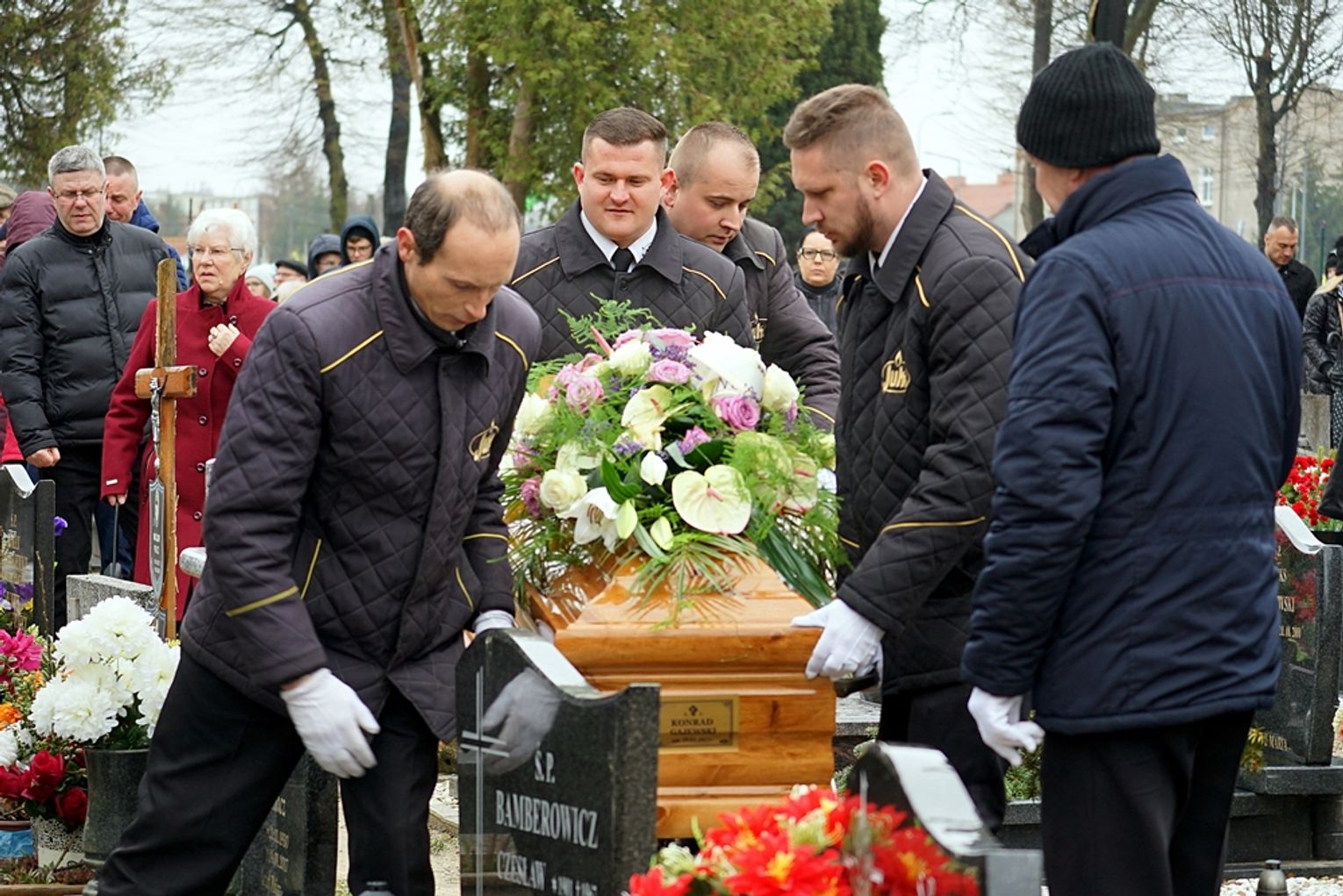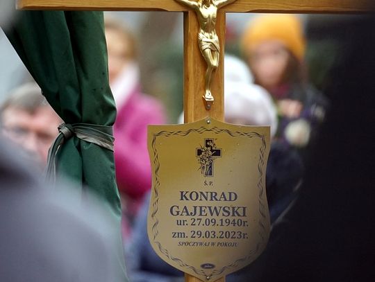 Dziś, 1 kwietnia o godz. 10-tej bliscy i przyjaciele zmarłego odmówili różaniec za jego duszę, by po nim wziąć udział w mszy świętej, kondukcie żałobnym i pogrzebie na cmentarzu przy ul. Gdańskiej w Tczewie. Żegnali go najbliżsi brat, przyjaciele, a wśród nich także ci, z którymi kolportował nielegalną prasę podziemną i strajkował jako jeden z pierwszych w kraju. Z władz zauważyliśmy jedynie przewodniczącą Rady Powiatu Barbarę Kamińską i radnego powiatu Jana Kulasa... Uroczystość była niezwykle wzruszająca. Wszyscy dzielili się wspomnieniami o żegnanym ostatni raz Konradzie Gajewskim... Podkreślano jego upór i niezłomność.